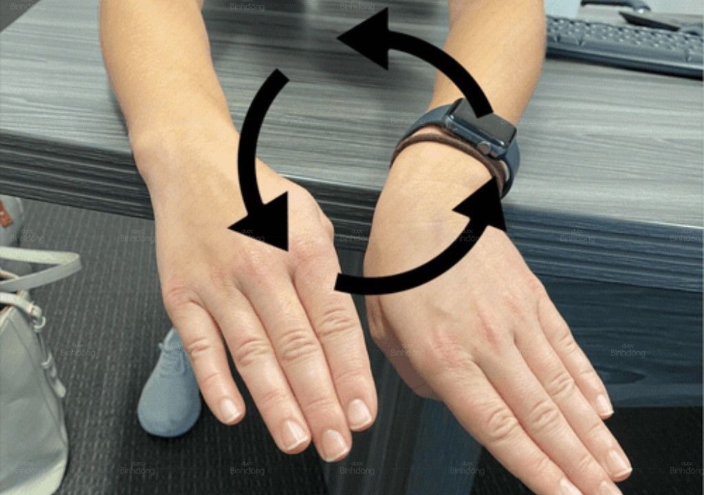 - Xoay cổ tay theo chiều kim đồng hồ, tạo thành 1 vòng tròn.