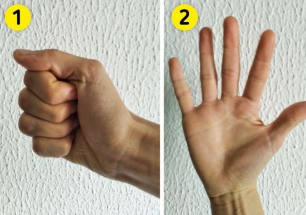 - Từ từ nắm chặt tay lại thành nắm đấm, không nắm quá chặt.